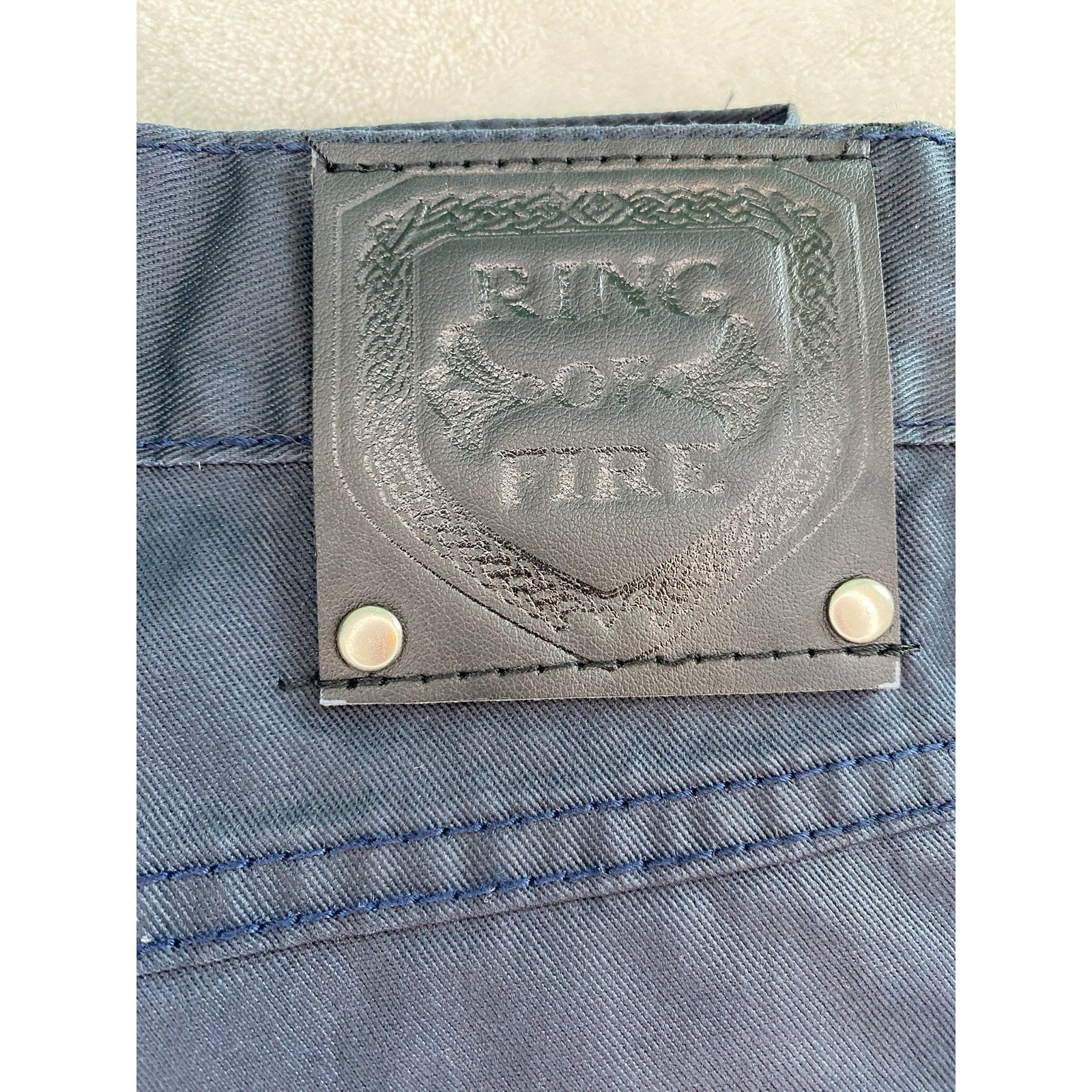 The Men's Ring of Fire Downtown Los Angeles Slim Straight Denim Black (or extremely dark blue) Jeans in size 33x30 are a stylish and high-quality choice for the modern man. With a slim fit and straight leg, these jeans provide a sleek look that is perfect for any occasion. Made of durable cotton denim in a dark wash, they feature a classic 5-pocket design and a button closure. The black color adds a trendy touch, while the zipper accents give them a touch of flair. Whether you're going for a designer look or just need a reliable pair of jeans, these Ring of Fire jeans are sure to impress.